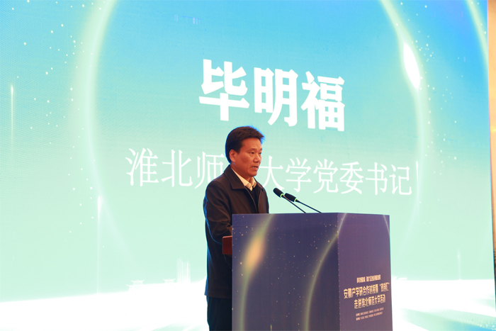 毕明福在致辞中代表学校向与会领导嘉宾和企业家表示欢迎和感谢。他指出,学校高度重视科技创新和成果转化工作。近年来,学校加强内涵建设,壮大科技创新力量;注重服务导向,完善科技成果转化机制;激发内生动力,提升科技成果转化成效。他强调,学校将充分发挥学科、平台和人才优势,借助“双创汇”契机,与地方政府和企业开展深入合作,聚焦地方主导产业技术难题,突破关键核心技术、解决共性堵点问题,使大家在“双向奔赴”中实现“双向赋能”,促进双方高质量发展。下一步,学校将始终把科技创新作为自己的重要使命,把科技成果转化作为自己义不容辞的重要责任,为皖北全面振兴和淮北经济社会发展贡献智慧和力量。